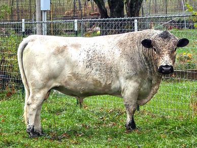 “Macho” is our current Herd Sire. He is non chondro, non PHA, A2A2, and hetero-polled. Hetero-White with black tips, carries Wild Red and Dun. He is a registered White Dexter.